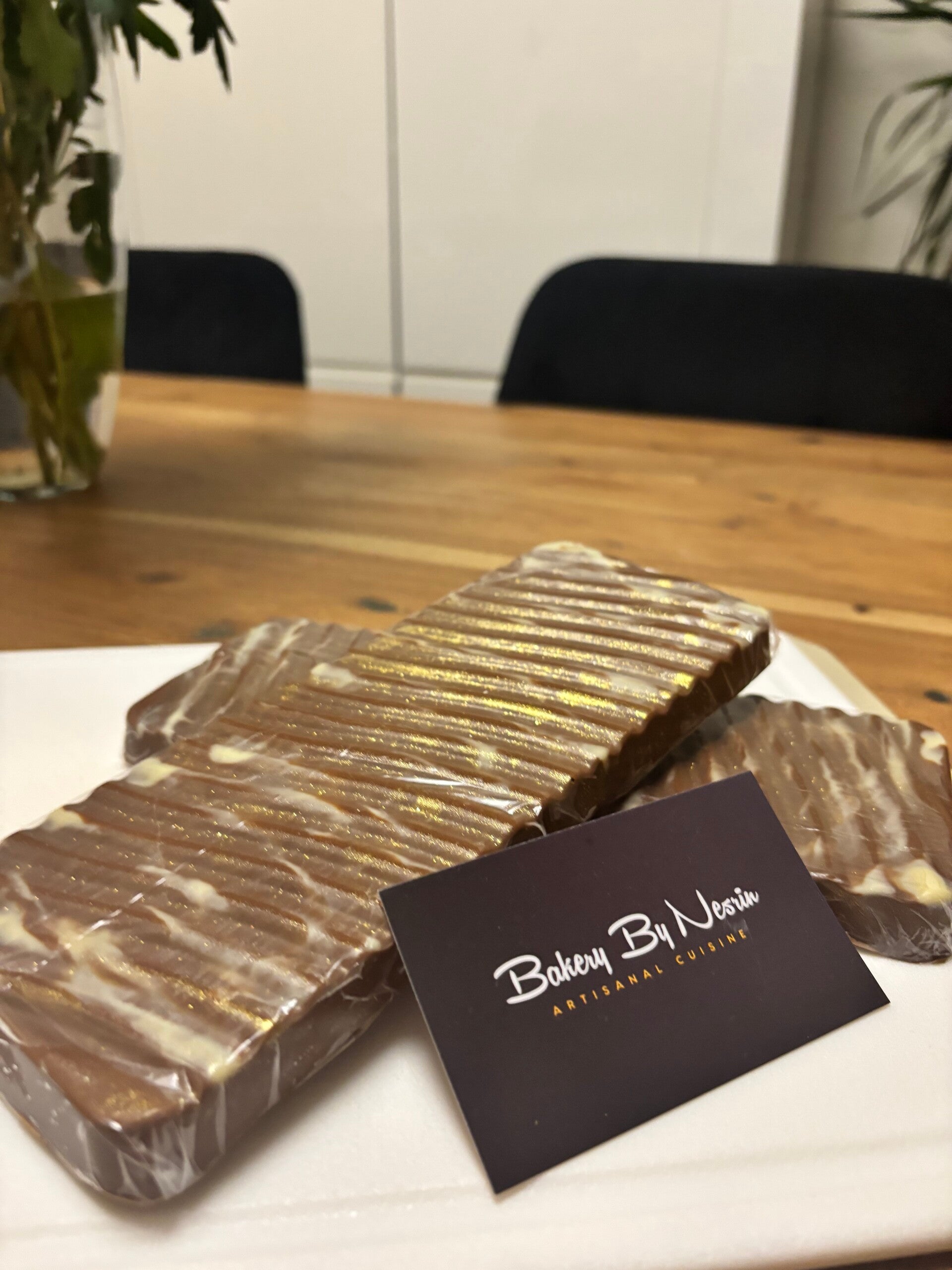 Pure luxe in elke hap: Romige chocolade met verfijnde smaken uit het Midden-Oosten zoals pistache en kunefe, kadayif. Een exclusieve traktatie voor echte fijnproevers.